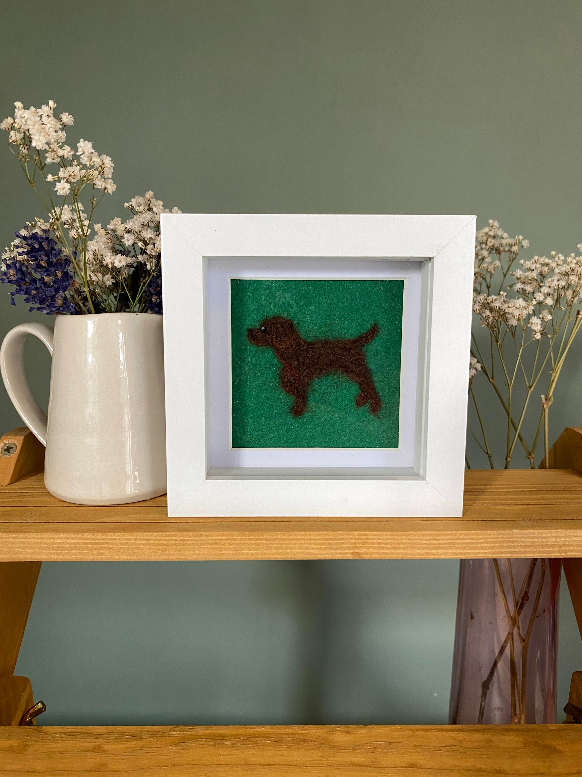 This Pointer design has been carefully crafted together using real wool with a felt background.