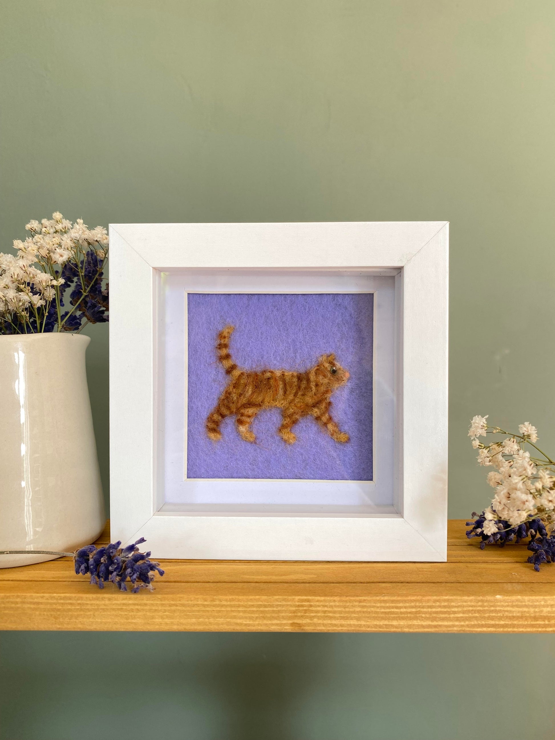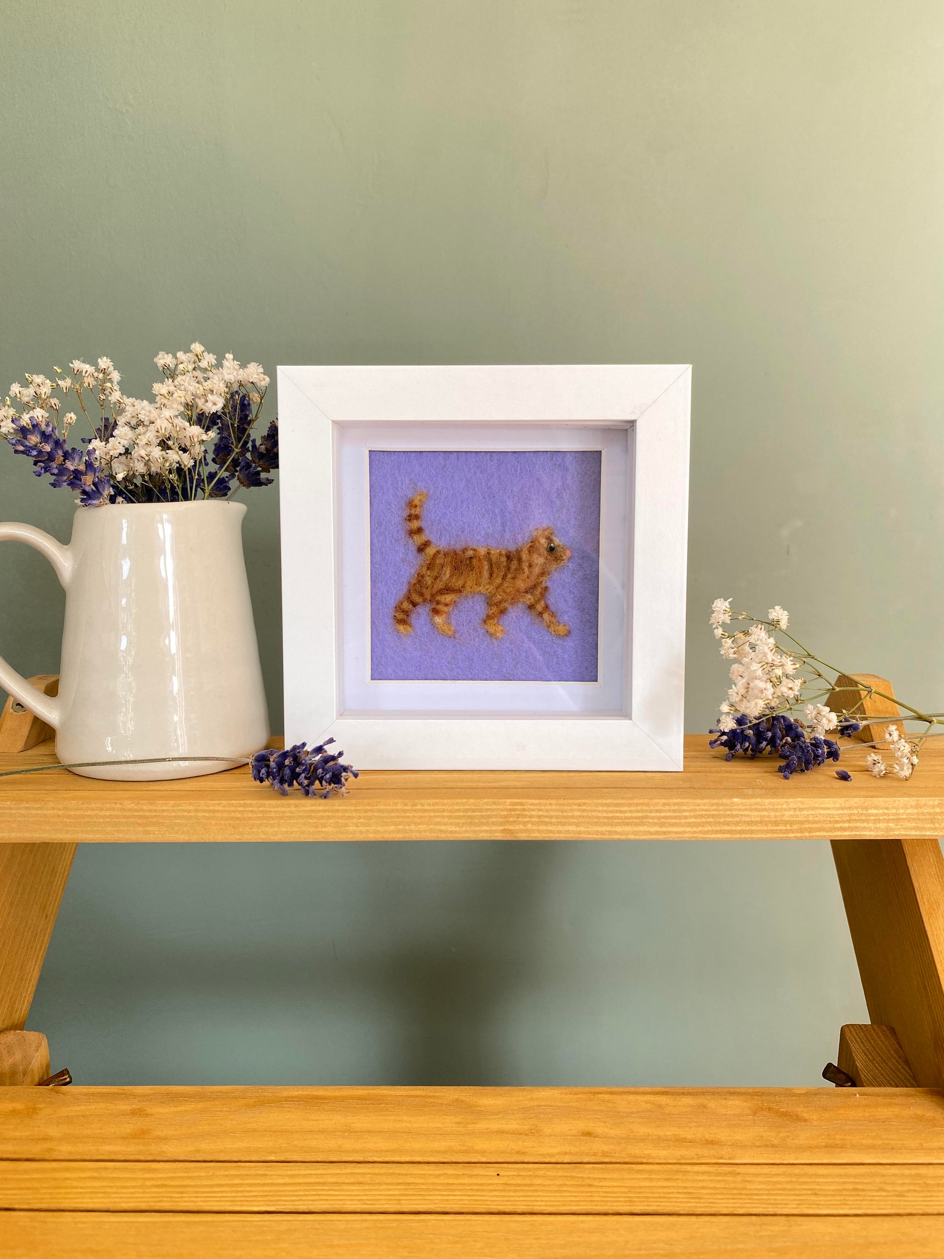This Orange Tabby Cat design has been carefully crafted together using real wool with a felt background.