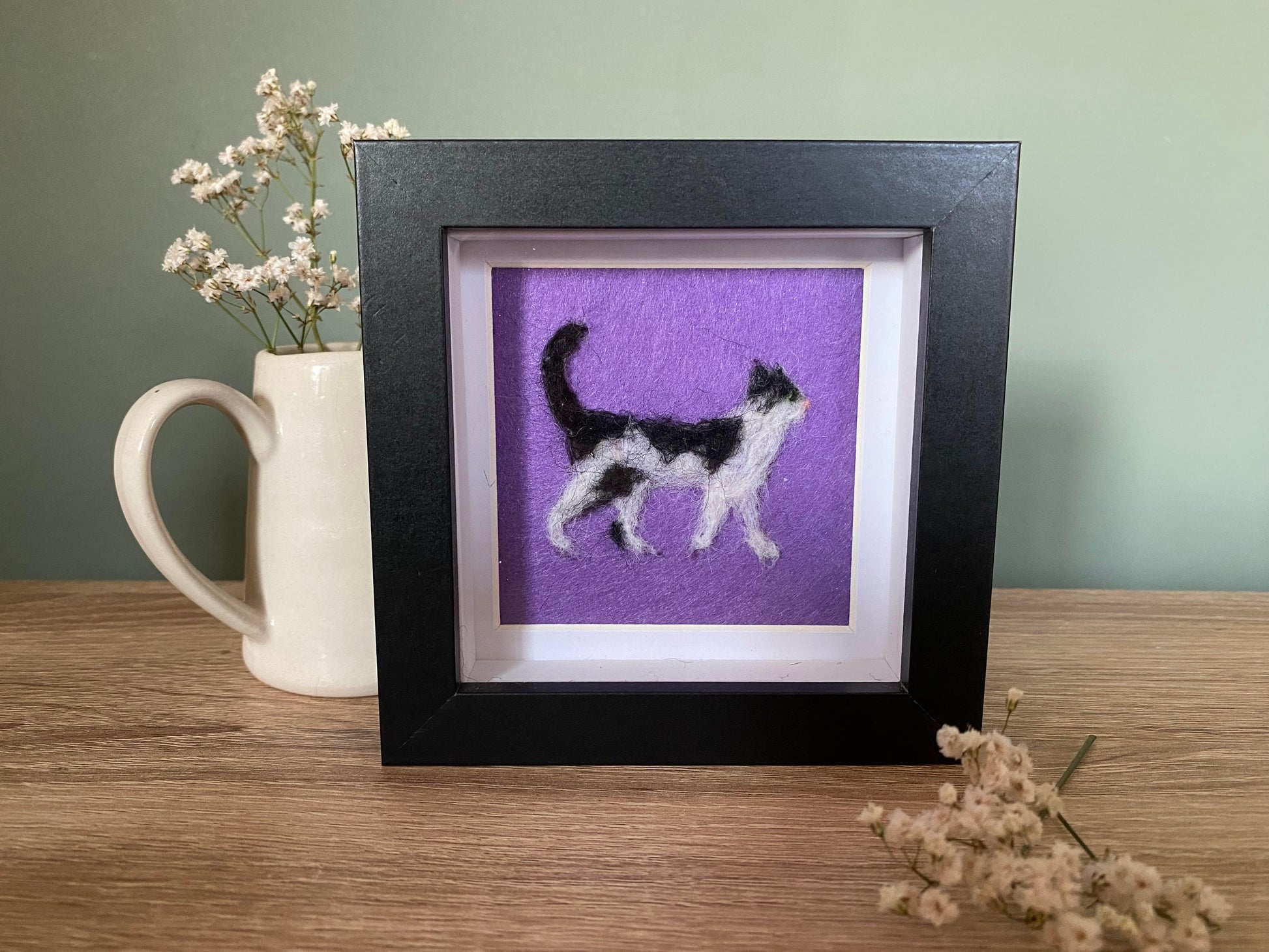 This Cat design has been carefully crafted together using real wool with a felt background.